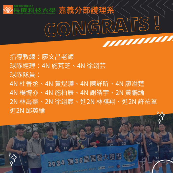 【嘉義分部護理系】賀本系學生參加2024第35屆國醫大護盃獲得男子籃球殿軍