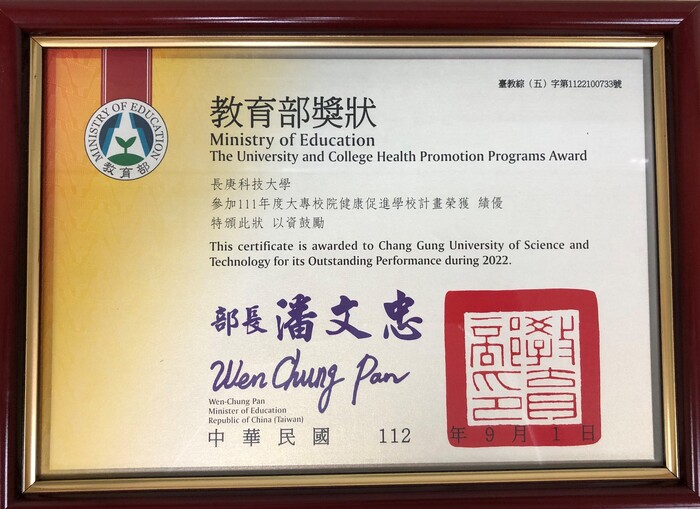 恭賀!本校再度榮獲111年度全國大專校院健康促進績優學校
