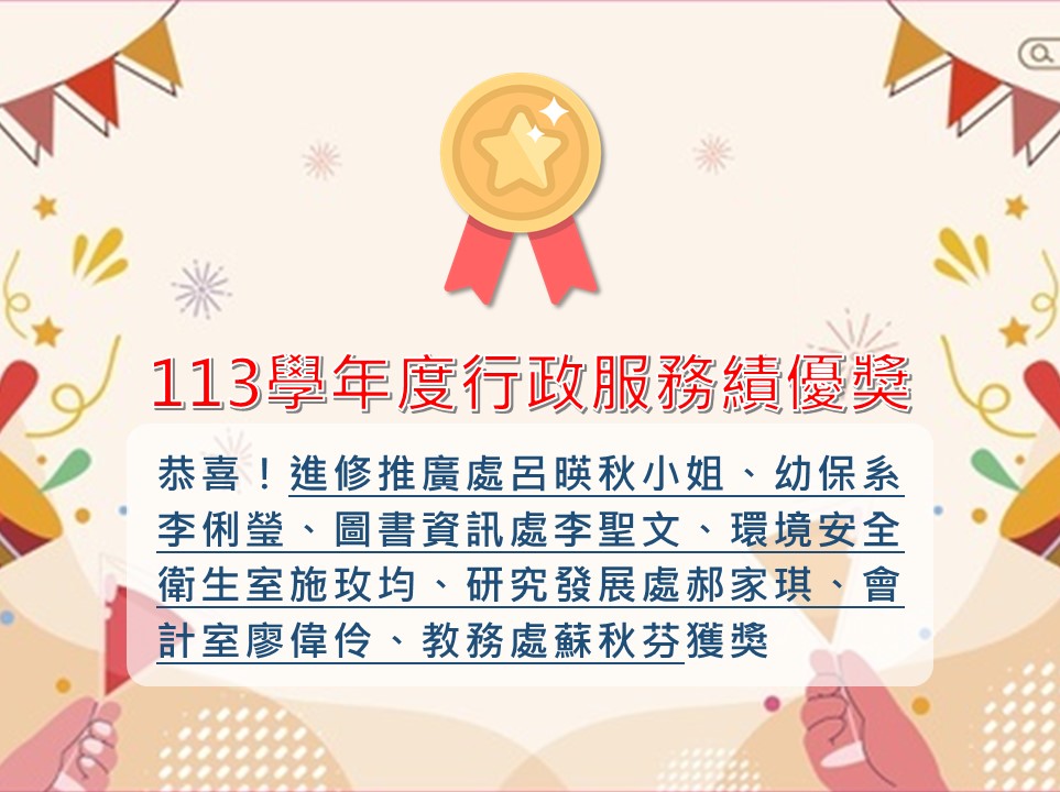 113學年度行政服務績優獎!恭喜獲獎老師!