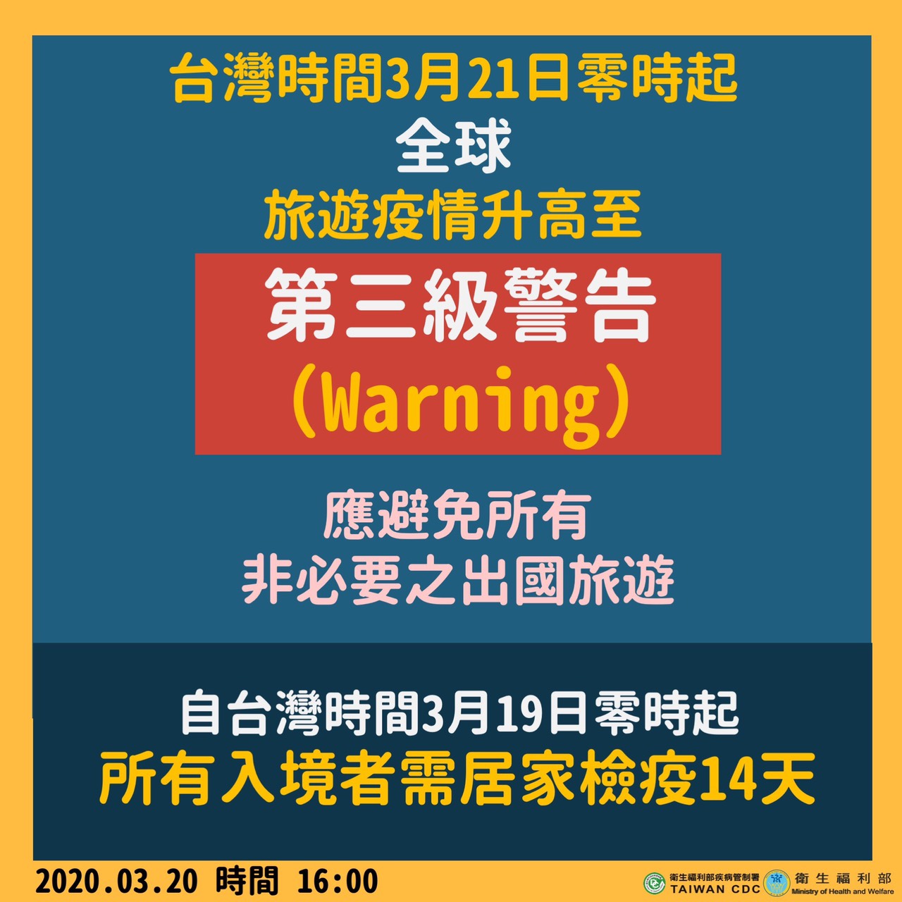 2020.03.20 全球旅遊疫情升至第三級警告,國人應避免所有非必要之出國旅遊